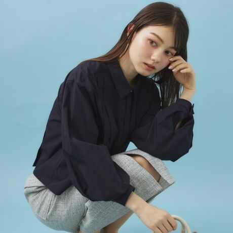 環境に配慮したエシカルブロードの短丈タックシャツ