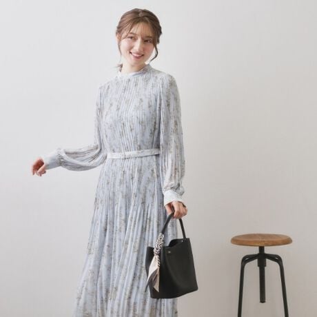 ・細やかなプリーツを全体に施したデザインが、動きに合わせて美しいシルエットを演出。