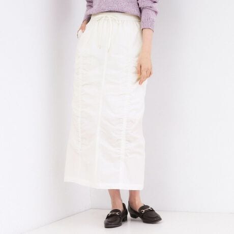 ・シャーリングデザインがポイントになっているナローロングスカートです。
