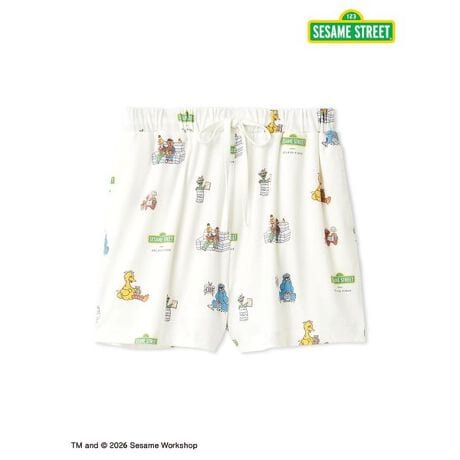<b>【SESAME STREET・人気キャラにピケブルーが寄り添う総柄ショートパンツ】</b>