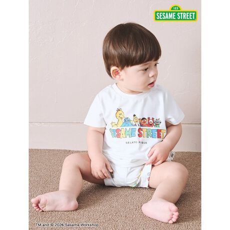 人気キャラクターが楽しそうに手を振っている、SESAME STREETらしいPOPなデザインのベビーサイズのワンポイントTシャツです。絵柄の下に、GELATO PIQUEのロゴもさりげなくプリント。本コラボアイテムだけのスペシャルな織りネームも付いています。色は合わせやすいオフホワイトとグレーの2色展開。ボトムには同シリーズの総柄ショートパンツがおすすめ。レディース、メンズ、キッズサイズも揃えているので、ファミリーでリンク・コーディネートをお楽しみいただけます。