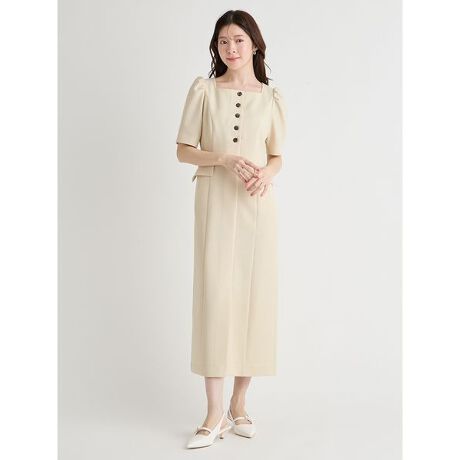 コンパクトなスクエアネックがデコルテをすっきりと見せ、ジャケットのようなマニッシュなデザインに、女性らしいタイトシルエットと5分丈のパフスリーブで洗練された印象に。