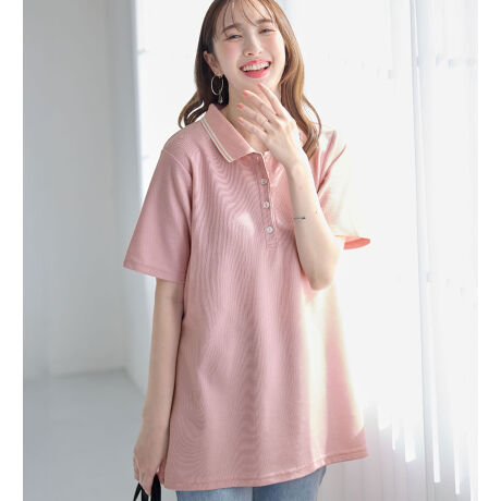 衿配色Aライン鹿の子ポロチュニック