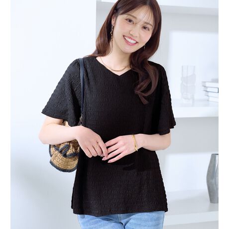 ・すっきりVネックでデコルテ美人魅せ