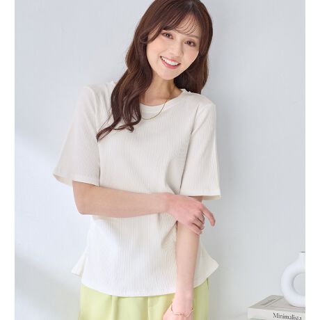 ・縦リブ素材で上品な質感と立体感ある仕上がりに