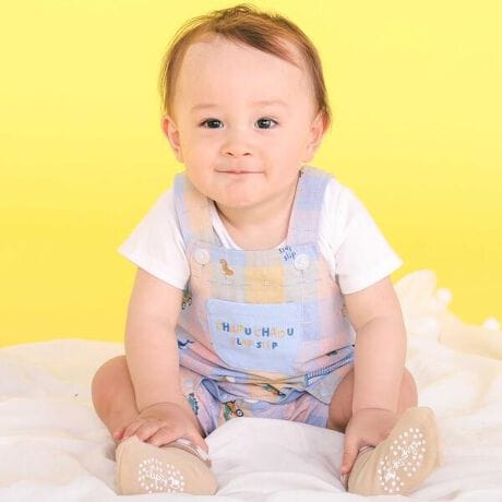 サロペットはしっかりとした布帛素材でシルエットがきれいに見え、ボディミニは柔らかく肌馴染みの良い天竺素材を使用し、赤ちゃんが快適に過ごせる着心地に。