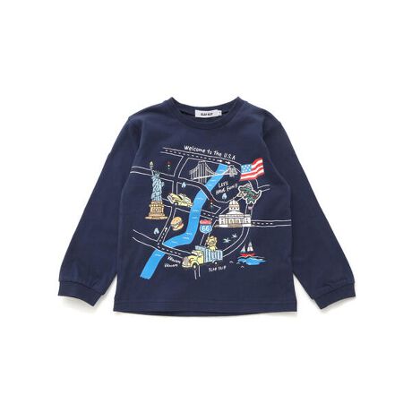 カラーごとにちがう国のマップが描かれた、旅気分を楽しめる男の子用長袖Tシャツ。