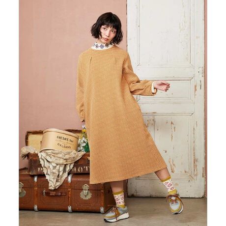顔周りをパッと明るく見せてくれるワンピース。一枚着としてはもちろん、季節の変わり目にはインナーにハイネックトップスをレイヤードするとロングシーズンお召しいただけます。