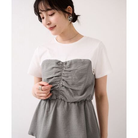 また、トレンド継続のシャーリングディテールをさりげなくセンターフロントに入れて、大人もコーディネートできるビスチェドッキングにバージョンアップ!