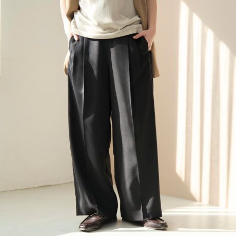頼れる多機能リネンタッチ素材。旬顔ツータックワイドパンツ