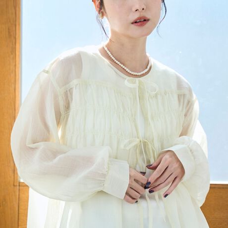 フロントのリボンは結んでトップスとしても、開けて羽織としても使える2way仕様です。