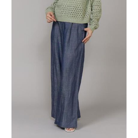 ■デザインラインを拾わないワイドストレートシルエットでスタイルアップが叶うデニムパンツ。フロントタックと腰まわりをすっきり見せるハイウエストデザインがポイントで、ウエストバックはゴム仕様のため、きれい見えしながらもイージーな穿き心地を実現しています。■素材カジュアルな印象のデニム素材を、リヨセル×リネンで上品に表現。通常のデニムに比べて色落ちしにくく、滑らかな肌触りと美しいシルエットを叶えます。見た目以上に軽く、快適な着心地も魅力。さらにシワになりにくいイージーケア素材で、デイリーに取り入れやすいです。・裏地無し・ウエスト後ろゴム仕様・ポケットあり同素材のジャケット品番:6961144819■サンプル撮影商品画像の商品はサンプルです。実際の商品とはサイズや色味、素材、デザイン等の仕様が若干変更になる場合がございます。■カラーについては、可能な限り実際の商品に近いカラーにて撮影をおこなっておりますが、照明の関係により実際の製品とは色味が違って見える場合があります。またパソコン・スマートフォンなどの環境により、若干製品と画像のカラーが異なる場合もございます。現物と画像のカラー差異については返品理由となりませんので、予めご了承ください。■サイズ表記はあくまで目安となります。