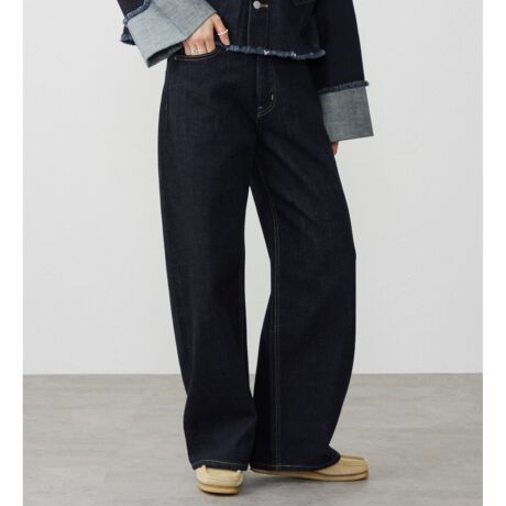 ヒップからワタリにかけてゆとりを持たせた、ルーズでこなれ感のあるシルエットが特徴のワイド。丸みを抑えたボーイッシュな着こなしを好む女性に向けたボクシーなパターン形成のために、ウエストにはストレートベルトを使用。脚のラインを拾わないワイドなフォルムなので、体型を選ばずどなたでも着こなしやすいアイテムです。