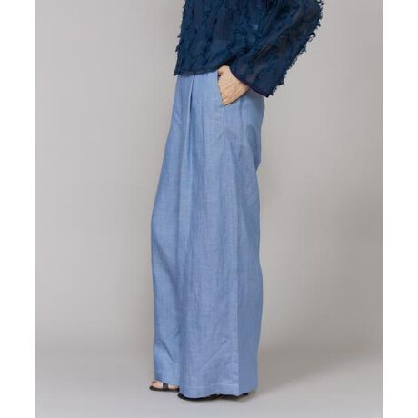 ■デザインラインを拾わないワイドストレートシルエットでスタイルアップが叶うデニムパンツ。フロントタックと腰まわりをすっきり見せるハイウエストデザインがポイントで、ウエストバックはゴム仕様のため、きれい見えしながらもイージーな穿き心地を実現しています。■素材カジュアルな印象のデニム素材を、リヨセル×リネンで上品に表現。通常のデニムに比べて色落ちしにくく、滑らかな肌触りと美しいシルエットを叶えます。見た目以上に軽く、快適な着心地も魅力。さらにシワになりにくいイージーケア素材で、デイリーに取り入れやすいです。・裏地無し・ウエスト後ろゴム仕様・ポケットあり同素材のジャケット品番:6961144019■サンプル撮影商品画像の商品はサンプルです。実際の商品とはサイズや色味、素材、デザイン等の仕様が若干変更になる場合がございます。■カラーについては、可能な限り実際の商品に近いカラーにて撮影をおこなっておりますが、照明の関係により実際の製品とは色味が違って見える場合があります。またパソコン・スマートフォンなどの環境により、若干製品と画像のカラーが異なる場合もございます。現物と画像のカラー差異については返品理由となりませんので、予めご了承ください。■サイズ表記はあくまで目安となります。