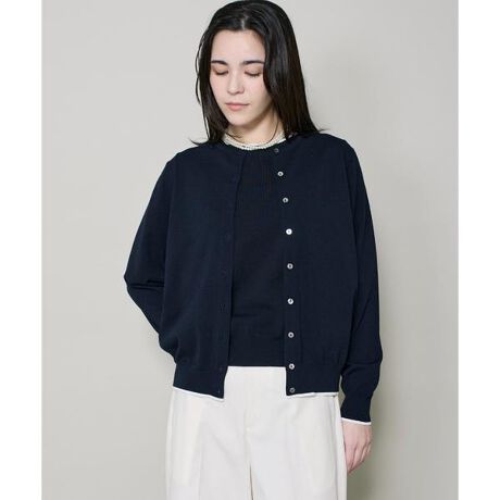 ■デザイン定番のクルーネックカーディガンと半袖クルーネックプルオーバーのニットアンサンブル。今シーズンはライン配色とボーダー柄の2パターンご用意しました!ポイントで入れたライン状の配色使いがアクセントになり、ベーシックなアイテムに上品なこなれ感をプラス。スタイリングにアクセントを効かせるボーダー柄のカーディガンは、夏場の羽織りとしても大活躍。細めのボーダーピッチで大人のフレンチカジュアルを演出します。単品使いもしやすい程よいサイズ感にこだわり、さまざまなコーディネートが楽しめます。カーディガン、インナー共に細いストレッチ糸を一緒に編み立てることで適度な張り感が生まれ仕立て映えし、型崩れしにくいメリットも◎■素材テンセル特有の光沢感となめらかさにポリエステルの張り感が合わさった風合いが特徴の素材。独特の光沢感と柔らかさに加え清涼感のある編地に仕上がっています。インナーは全面に冷感ナイロン糸を編み込み、接触冷感機能で夏まで長くお召しいただけます。・水洗い可・アンサンブル・フロントボタン■サンプル撮影商品画像の商品はサンプルです。実際の商品とはサイズや色味、素材、デザイン等の仕様が若干変更になる場合がございます。■照明の関係により、実際の製品とは色味が違って見える場合があります。またパソコン・スマートフォンなどの環境により、若干製品と画像のカラーが異なる場合もございます。■サイズ表記はあくまで目安となります。
