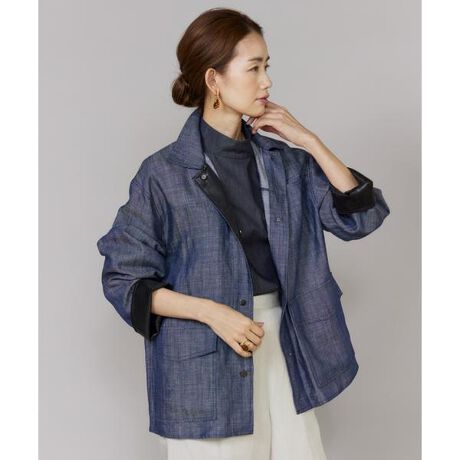 ■デザインゆるっと羽織れて抜け感のあるシルエットが魅力のデニムジャケット。ヒップを覆うオーバーサイズで、こなれたバランスに仕上げました。袖口見返しや襟裏に施した配色がさりげなくモード感をプラス。大きめのアウトポケットとメタルのドットボタンがデザインにメリハリとアクセントを添え、リッチなカジュアル感を演出します。■素材カジュアルな印象のデニム素材を、リヨセル×リネンで上品に表現。通常のデニムに比べて色落ちしにくく、滑らかな肌触りと美しいシルエットを叶えます。見た目以上に軽く、快適な着心地も魅力。さらにシワになりにくいイージーケア素材で、デイリーに取り入れやすいです。・裏地無し・ポケットあり同素材のパンツ品番:6951178006■サンプル撮影商品画像の商品はサンプルです。実際の商品とはサイズや色味、素材、デザイン等の仕様が若干変更になる場合がございます。■カラーについては、可能な限り実際の商品に近いカラーにて撮影をおこなっておりますが、照明の関係により実際の製品とは色味が違って見える場合があります。またパソコン・スマートフォンなどの環境により、若干製品と画像のカラーが異なる場合もございます。現物と画像のカラー差異については返品理由となりませんので、予めご了承ください。■サイズ表記はあくまで目安となります。
