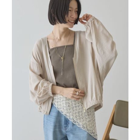 紫外線対策もおしゃれも両立できる軽やかアウター柔らかな素材感と美しい落ち感が特徴のブルゾンです。Vネックのすっきりしたラインが首元をきれいに見せ、ほどよく抜け感のある着こなしを楽しめます。ドルマン仕様により締め付け感が少なく、リラックスした着心地です。ファスナー付きで開け閉めしやすく、気温調整もしやすいのがうれしいポイントです。UVカット機能が備わっているため、日常のお出かけや通勤、旅行などさまざまなシーンで活躍します。軽く羽織るだけでコーディネートがまとまり、大人カジュアルな雰囲気を演出できます。シンプルで合わせやすいデザインなので、季節の変わり目にも重宝する一枚です。