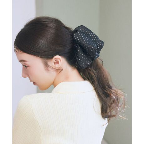 ドットが愛らしく揺れるドット2段フリルバンス。ふんわりとした二段フリルが後ろ姿に立体感と上品な甘さを添え、手に取ると伝わる軽やかなボリュームが魅力です。ポリエステルの滑らかな生地とアクリル樹脂のバンスでしっかり留まり、の程よいサイズがデイリーヘアを手早く華やかに仕上げます。シンプルなニットやブラウス、デニムスタイルに合わせるだけで瞬時にフェミニンなアクセントに。低めのポニーテールやルーズなハーフアップで抜け感を出すのがおすすめです。