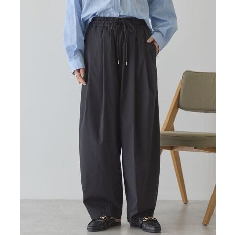 抜け感ときちんと感を叶える、軽量イージーパンツ軽やかなナイロン素材が、長時間の着用でも快適な履き心地を実現します。ウエストはドローストリング仕様で、サイズ調整がしやすくストレスフリーです。タック入りのデザインが立体感を生み、リラックス感がありながらもだらしなく見えにくいのが魅力です。シンプルなカラーとデザインで、カジュアルシーンはもちろん、きれいめなトップスとも相性が良いです。トップスを選ばず着回しやすいため、忙しい日常でもコーディネートに迷いにくくなります。動きやすさと見た目のバランスを大切にした一本で、毎日のスタイルをさりげなく格上げしてくれます。大人の余裕を感じさせるカジュアルスタイルにぴったりです。透け感[なし]