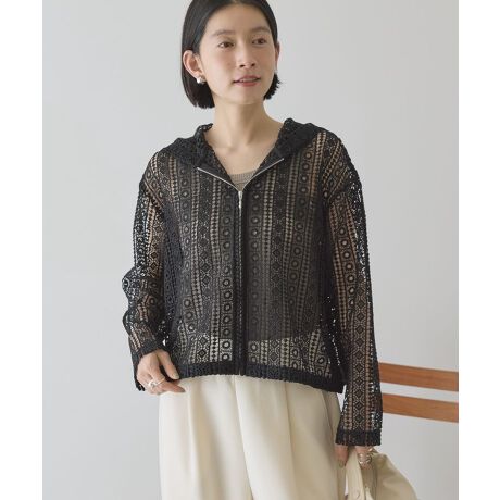 レースで差がつく、軽やかフードスタイル幾何学柄のレースが視線を引きつけ、装いに程よい華やかさをプラスしてくれます。フード付きシャツのデザインにより、リラックス感がありながらも大人らしいバランスを保てます。透け感のある素材は空気を含むように軽く、長時間着用してもストレスを感じにくいのが特長です。重ね着を前提にしたシルエットで、インナー次第で印象を変えられるため、コーディネートの幅が広がります。デニムやワイドパンツと合わせるだけで、トレンド感のある大人カジュアルが完成します。レースならではの表情がシンプルな着こなしを格上げし、季節感も自然に演出できます。日常のカジュアルシーンに取り入れやすく、着回し力を重視する方にもおすすめです。透け感[あり]