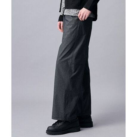 ナイロンとポリエステルを混紡し、メランジ(霜降り)調の表情豊かなピケ素材を使用しています。ソフトな肌触りと高い伸縮性を兼ね備えています。表面には環境負荷の少ないフッ素フリーの撥水加工を施しました。