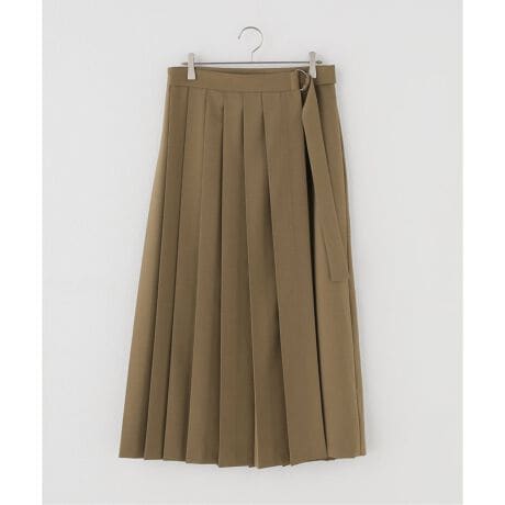 梳毛(ソモウ)のような滑らかさと、奥行きのあるツヤ感を再現した「ソモウライク」素材を使用したプリーツスカート。