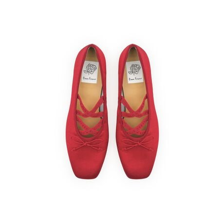 甲にあしらったクロスデザインがポイントのバレリーナシューズ。