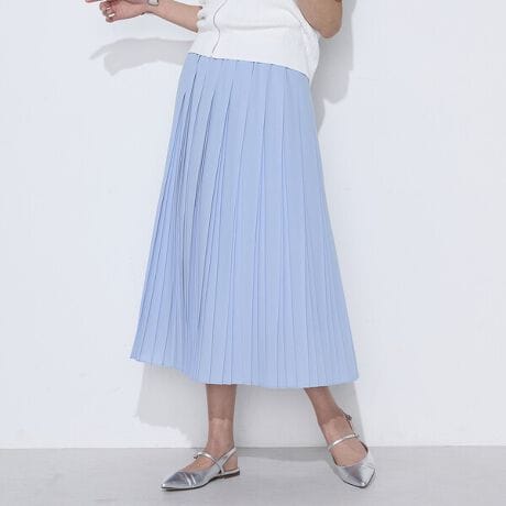 裾に向かってシャープに広がる変形サイドプリーツスカートです。