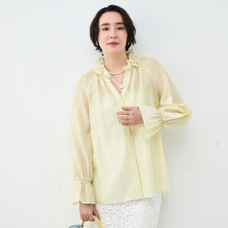 ウォッシャブルシアーオーガンジーフリルネックブラウス