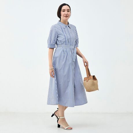 ・しなやかな風合いできれいなシルエットの出るブロードを使用した襟付きのAラインワンピース