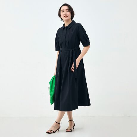 ・しなやかな風合いできれいなシルエットの出るブロードを使用した襟付きのAラインワンピース
