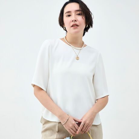 ・ダブルクロスサテンを使用した半袖Tブラウス