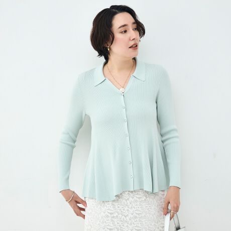 《手洗い可能》リブフレアスキッパーポロ襟カーディガン