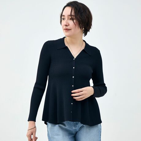 《手洗い可能》リブフレアスキッパーポロ襟カーディガン