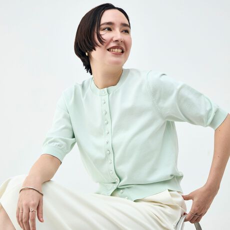 ・クルーネックカーディガン(6-0035-1-02-005)の袖丈違い