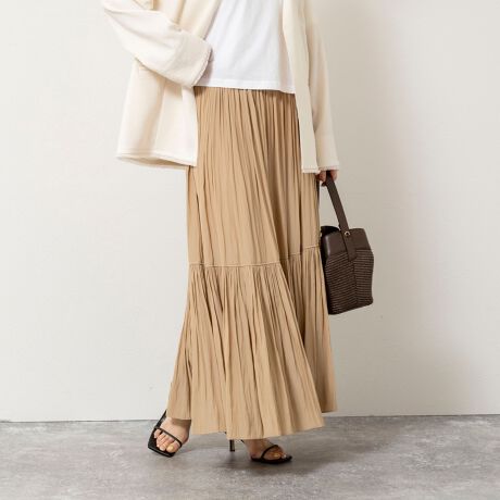 ・割繊糸を使用することで、繊細でなめらかなタッチを実現したシルク調のロングスカート