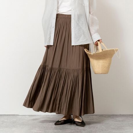 ・割繊糸を使用することで、繊細でなめらかなタッチを実現したシルク調のロングスカート