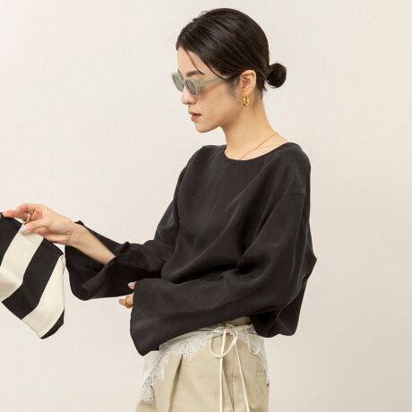 ・キュプラ100%ならではの、なめらかで上品な光沢感が魅力のサテンT