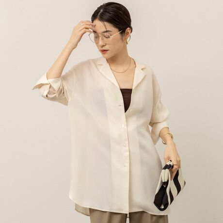 ・キュプラ100%ならではの、なめらかで上品な光沢感が魅力のシャツブラウス