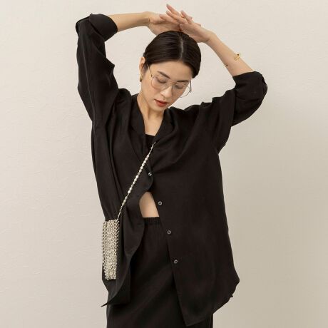 ・キュプラ100%ならではの、なめらかで上品な光沢感が魅力のシャツブラウス