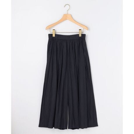 ■デザイン・スカート見えのパンツなので安心な着心地とウエストゴムのイージーな履き心地が嬉しいアイテムです。・ウエスト内側は、ドロスト仕様になっているので共ヒモで、好みのウエストのサイズに調整できます。・分量感のあるシルエットで、揺れ動くたびに女性らしさを演出。・ギャザーがプリーツのようにタテに落ちてみえて上品な印象です。・ポケット付きのデザインで使い勝手も◎。程よいカジュアル感はありながらも、さらっとしたキレイめな素材感は、ゆったりとしたニットやカジュアルなアイテムと合わせてクラスアップに。・落ち感のあるシルエットは、タックアウトのスタイリングでも重たく見えず、大人のリラクシースタイルがつくれます。