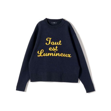 スウェットライクなデザインに、立体感のあるサガラ刺繍ロゴをあしらった、大人カジュアルに映えるロゴニットです。
