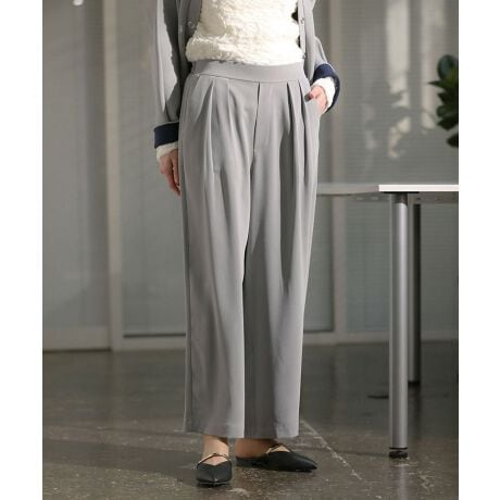 きちんと感も楽ちんも叶える一本なめらかな落ち感素材が、コーディネート全体を上品にまとめてくれます。ワイドシルエットでも縦のラインを意識したデザインのため、重たく見えにくいのが特長です。バックゴム仕様でウエストにやさしくフィットし、動きやすさも十分です。オンにもオフにも使える万能さで、忙しい毎日の強い味方になります。シンプルながら洗練された印象があり、きれいめにもカジュアルにも対応します。体型を選びにくく、自然なスタイルアップが期待できます。一本持っていると着回しの幅が広がる、頼れるアイテムです。