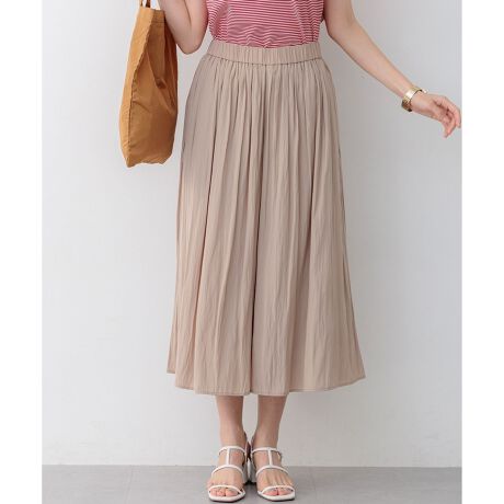 ■デザイン・スカート見えのパンツなので安心な着心地とウエストゴムのイージーな履き心地が嬉しいアイテムです。・ウエスト内側は、ドロスト仕様になっているので共ヒモで、好みのウエストのサイズに調整できます。・分量感のあるシルエットで、揺れ動くたびに女性らしさを演出。・ギャザーがプリーツのようにタテに落ちてみえて上品な印象です。・ポケット付きのデザインで使い勝手も◎。程よいカジュアル感はありながらも、さらっとしたキレイめな素材感は、ゆったりとしたニットやカジュアルなアイテムと合わせてクラスアップに。・落ち感のあるシルエットは、タックアウトのスタイリングでも重たく見えず、大人のリラクシースタイルがつくれます。