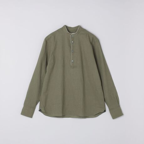 バンドカラーのプルオーバーシャツ。