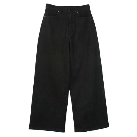 レース×デニムの異素材デザインがポイントの、ワイドデニムパンツ。