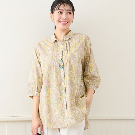 色が効いた繊細なペイズリー柄のシャツは、コーディネートに華やかさを添えてくれます。