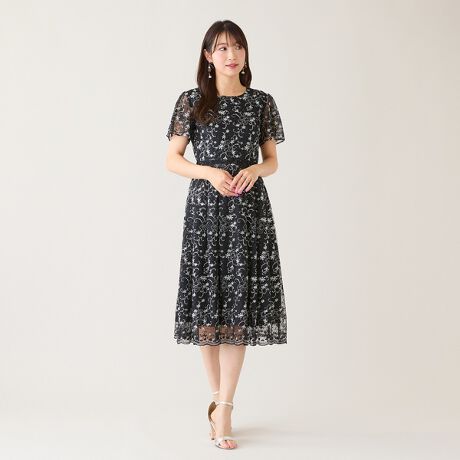 ・レースの特別感に心ときめくチュール刺繍のモノトーンワンピース。