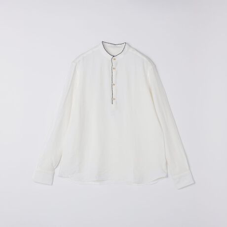 バンドカラーのプルオーバーシャツ。