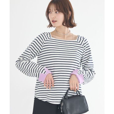 配色デザインで差がつく、上品カジュアルトップス首元を美しく見せるスクエアネックが、顔まわりを明るくすっきりとした印象に導きます。バイカラーのアクセントが効いたボーダー柄は、シンプルながらもコーデの主役になります。柔らかな素材感で肌なじみが良く、長時間着ても快適です。程よい丈感でアウトスタイルもバランス良く決まり、体型カバーも叶います。デニムやワイドパンツと合わせてカジュアルに、スカートと合わせてフェミニンにも楽しめます。着回し力が高く、毎日のコーデに自然と取り入れやすい一枚です。大人らしい可愛さをさりげなく演出でき、幅広いシーンで活躍します。透け感[なし]